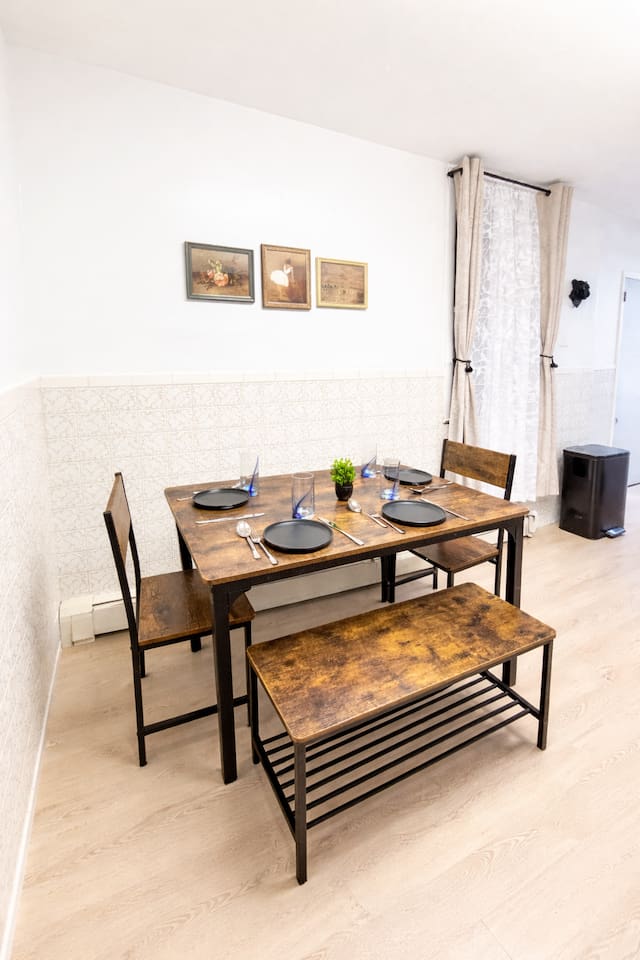 ✨ Amenities & Highlights 🚗Parking :Kindly note that this property offers street parking only. ⬆️ Stair Access: Please note that the home requires climbing stairs, providing elevated privacy and a quieter stay away from street-level noise. 🛏 Comfortable Bedrooms: Thoughtfully designed 3-bedroom layout featuring a vintage-inspired master bedroom with a plush king bed, workspace, and TV. Bedroom 1 and Bedroom 2 each offer cozy queen beds to ensure restful nights for every guest. 🛋 Inviting Living Room: A warm and welcoming gathering space with a sofa bed, TV, and a variety of board games—perfect for relaxing evenings after exploring the area. 🍽 Fully Equipped Kitchen: Complete with essential cookware, appliances, and a breakfast nook, making meal preparation and dining effortless and enjoyable. PARKING: Kindly be aware that there is no driveway or garage and only street parking is available . Nevertheless, due to the urban setting, securing a parking spot becomes increasingly challenging as the evening progresses. Additionally, it is essential to adhere to the designated street cleaning hours and relocate your vehicle accordingly. Street cleaning occurs between 10am to 12pm on Tuesdays and Fridays and on the opposite street on Mondays and Thursdays between 10:00 AM to 12:00 PM. ✨ Thoughtful Design & Comfort: Blending charm, functionality, and carefully curated touches throughout, this home offers a memorable and comfortable stay for families, friends, and business travelers alike.