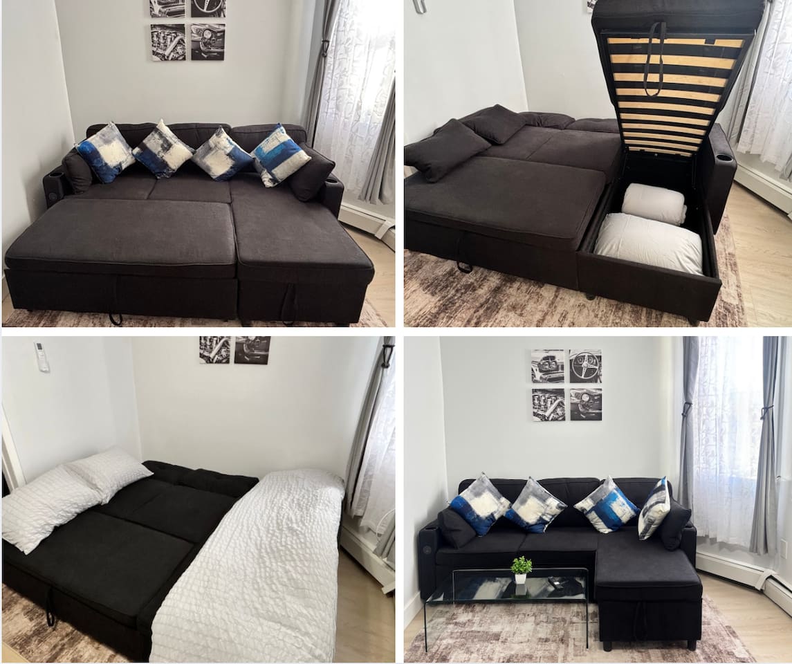 Welcome to this charming 3-bedroom, 1-bath home, conveniently located just a 20-minute drive from MetLife Stadium. Designed with comfort in mind, the master bedroom features a queen bed, workspace, TV, and warm vintage accents. Two additional bedrooms offer cozy queen beds. Relax in the living room with a queen sofa bed, TV, and board games, or enjoy meals in the fully equipped kitchen with a Breakfast corner—ideal for short or extended stays.