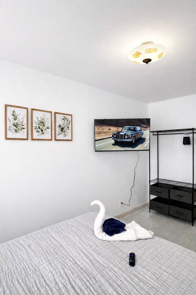 Welcome to this charming 3-bedroom, 1-bath home, conveniently located just a 20-minute drive from MetLife Stadium. Designed for comfort and ease, the master bedroom features a queen bed, dedicated workspace, TV, and warm, inviting accents. Two additional bedrooms offer cozy queen beds, each with its own TV. Unwind in the living room with a queen sofa bed, TV, and board games, or gather for meals in the fully equipped kitchen with a spacious 8-seater dining area—perfect for extended stays.