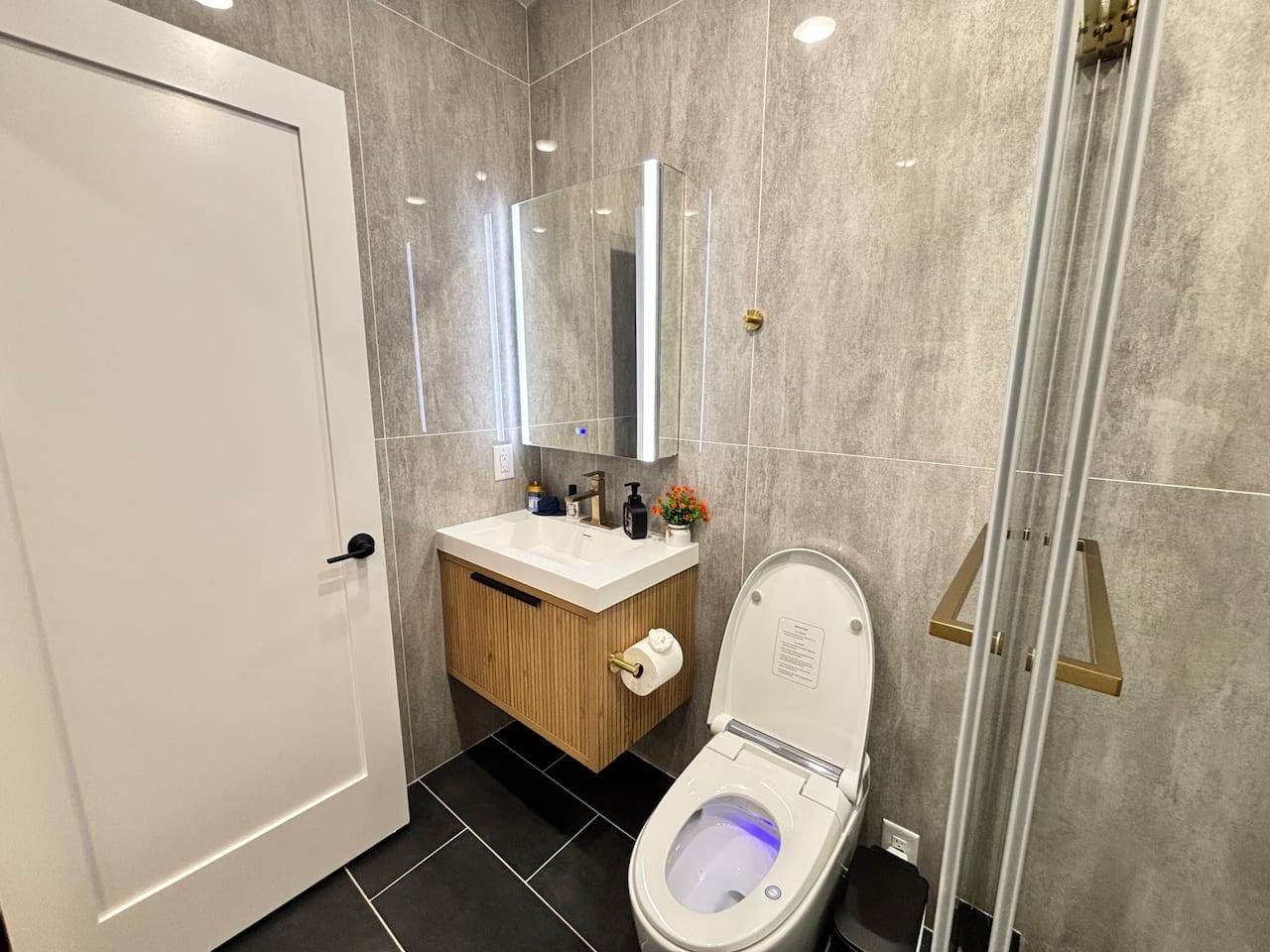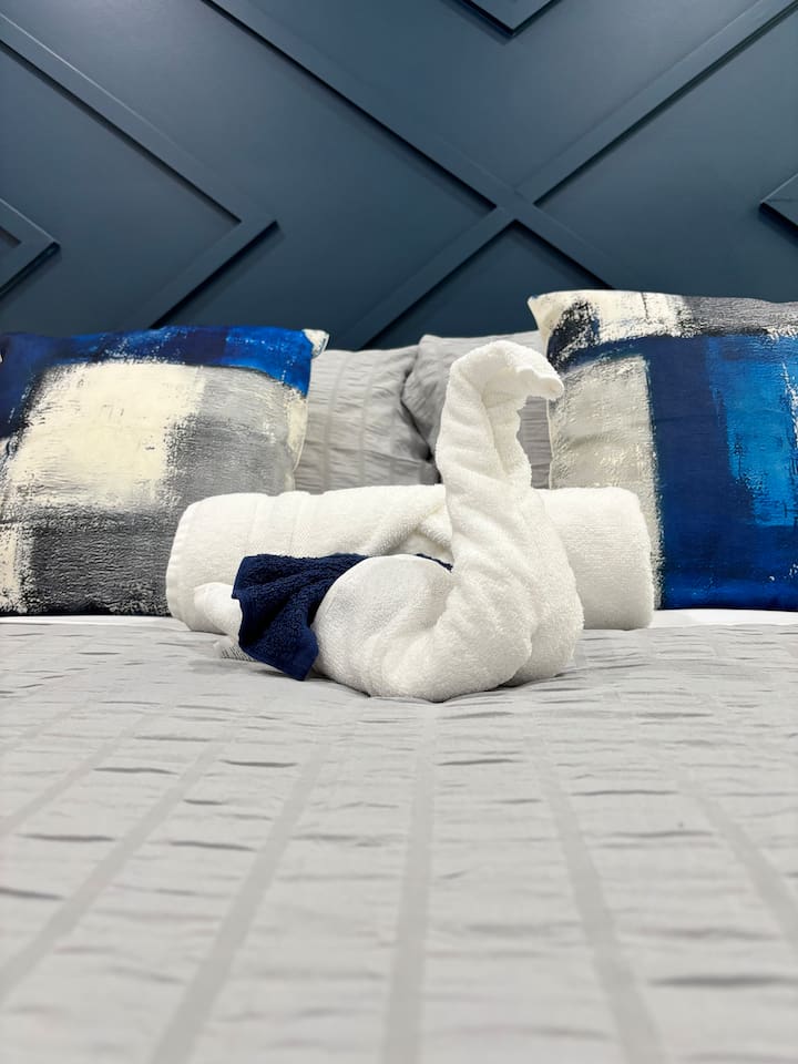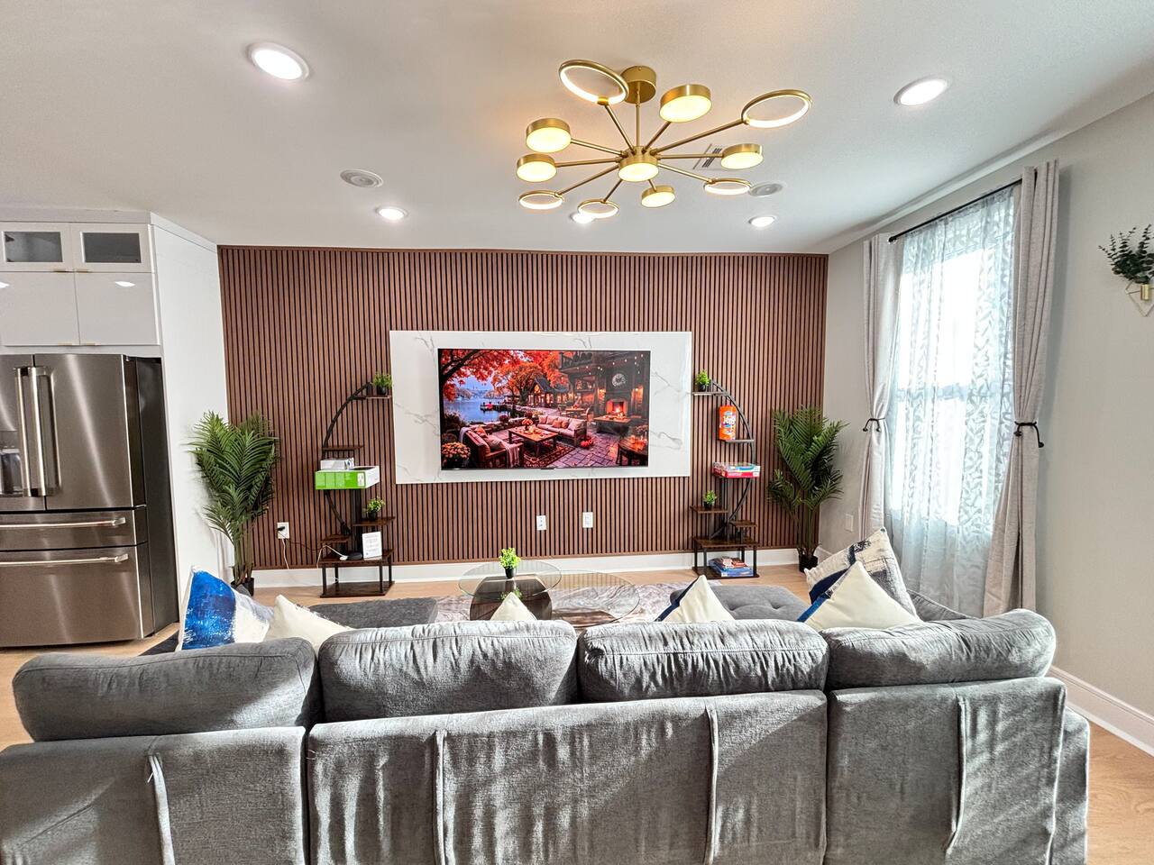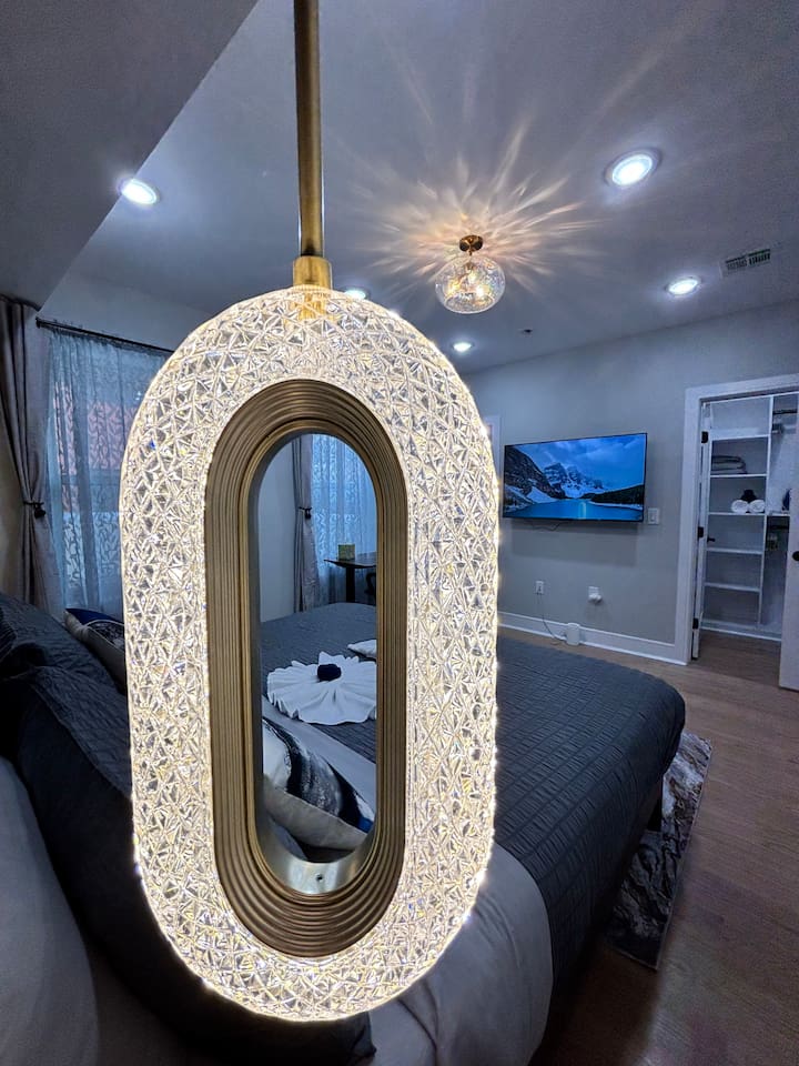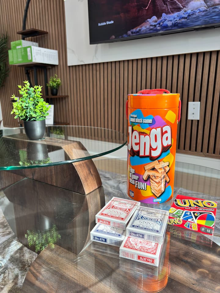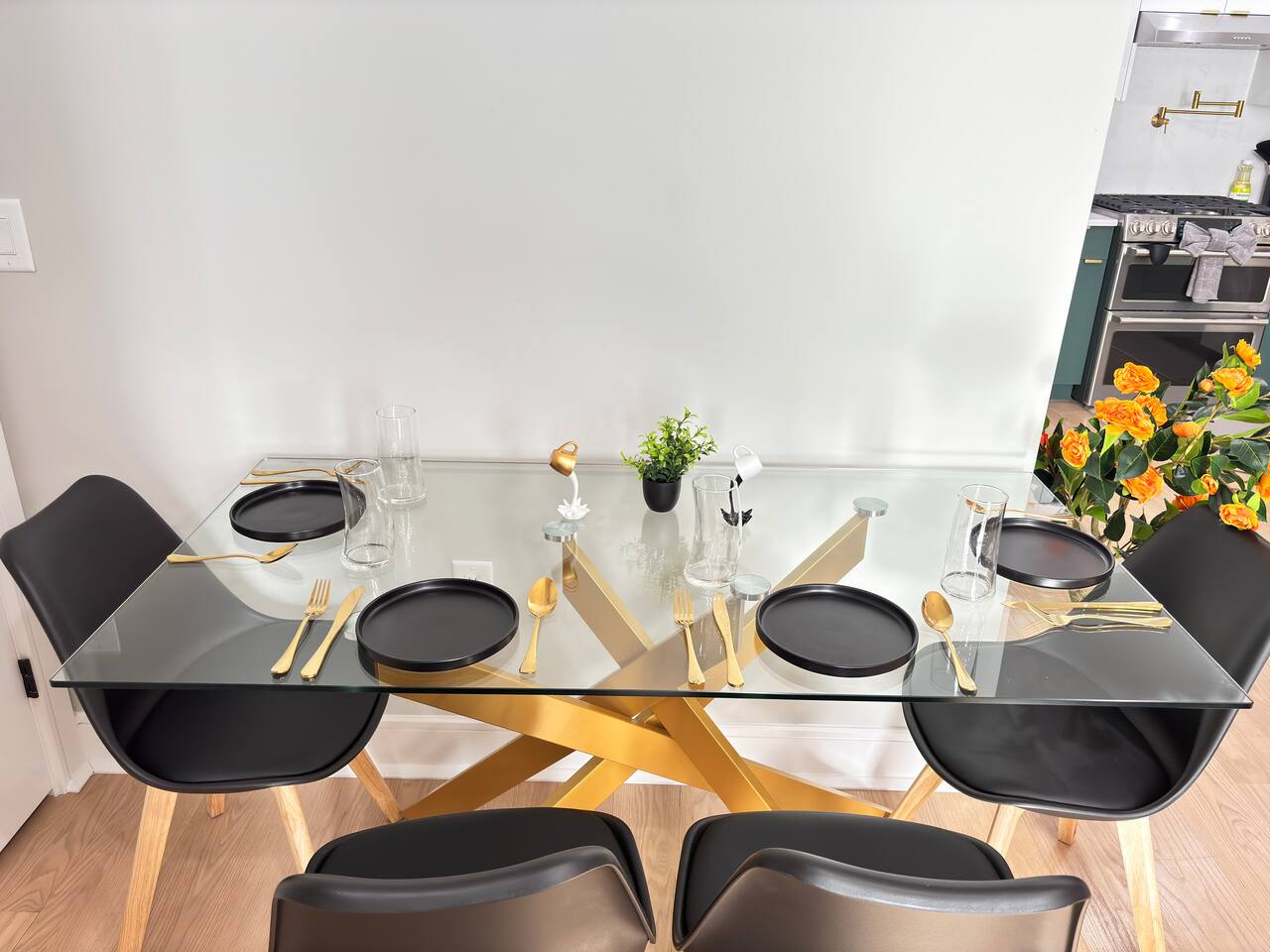 โจ Amenities & Highlights ๐ก Enhanced Safety: Ring cameras at the front entrance for added peace of mind. ๐จ High-Speed Internet: Lightning-fast 500+ Mbps Wi-Fi for streaming, work calls, and browsing. ๐ป Work-Friendly Space: Dedicated desk with built-in charging ports for productivity on the go. ๐ Luxurious Bedrooms: One king bed and two queen beds with 12-inch premium memory foam mattresses and fine linens. ๐ Stylish Living Room: Includes a queen pull-out sofa, Smart 4K Fire TV, and Xbox with Ultimate Game Pass (any purchases billed to your account). ๐ฒ Entertainment Ready: Selection of board games for cozy nights in. ๐ฝ Chef-Ready Kitchen: Fully stocked with a stove, dishwasher, refrigerator, microwave, toaster, coffee maker, and all cookware essentials. โ๏ธ Smart Refrigerator: ThinQ fridge with filtered water, crushed/cubed ice, and Wi-Fi controls. ๐งด Hotel-Quality Essentials: Fresh linens, plush towels, and premium toiletries for a refined stay. ๐งบ Laundry Access: Samsung Bespoke washer and dryer located downstairs, accessible via a short flight of stairs. โจ Spotless Clean: Professionally cleaned and sanitized before and after each stay for a pristine environment.