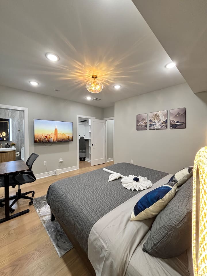 Other things to note ๐ญ Strictly no smoking indoors ๐พ Pets are welcome only with prior approval ๐ Please observe quiet hours from 10 PM โ 8 AM ๐ Parties and events are not permitted ๐ฅ Guest count should match your reservation Indulge in a stay at our meticulously designed retreat, offering upscale comforts, contemporary amenities, and an unbeatable Jersey City location for a truly memorable experience.