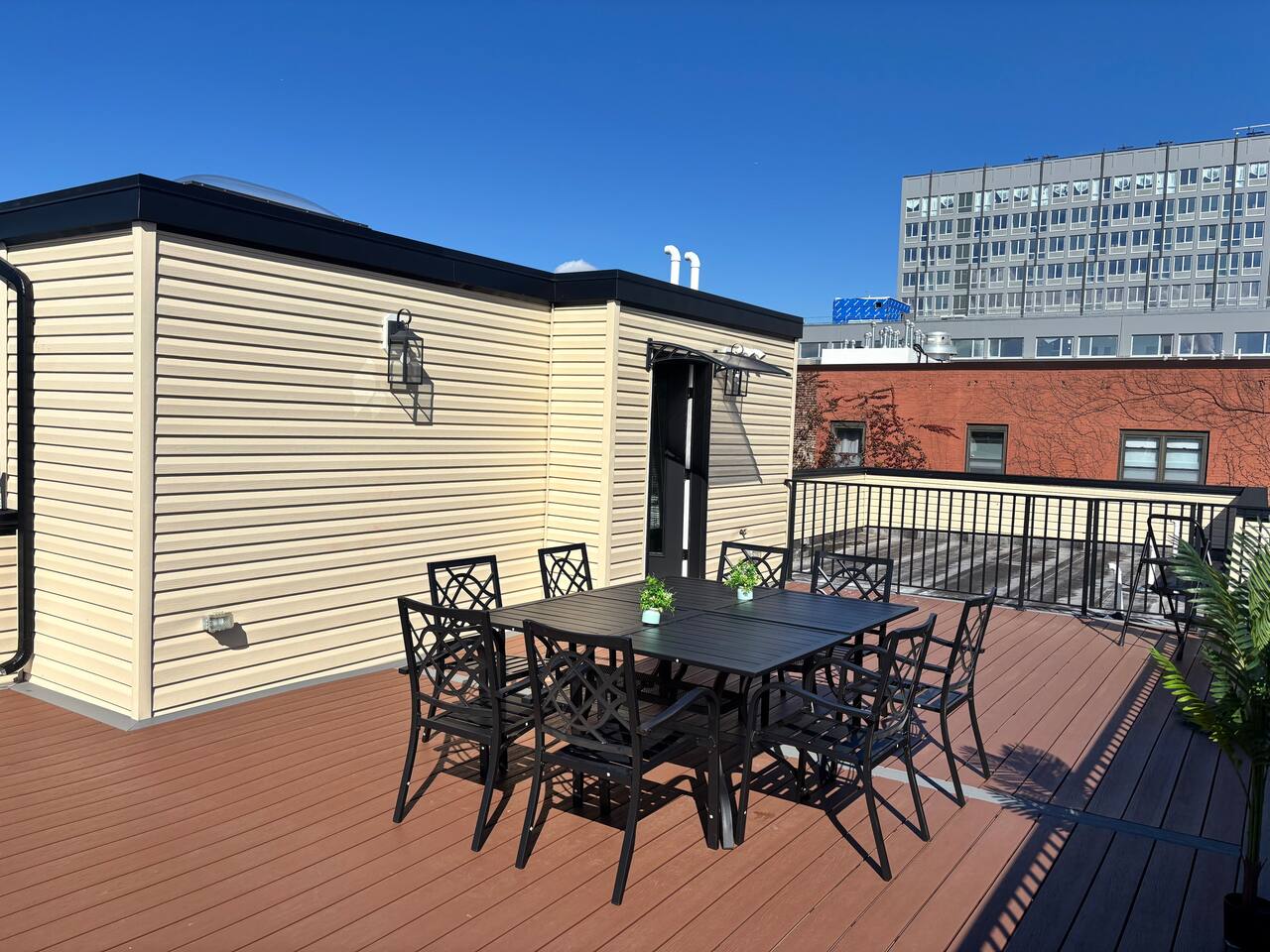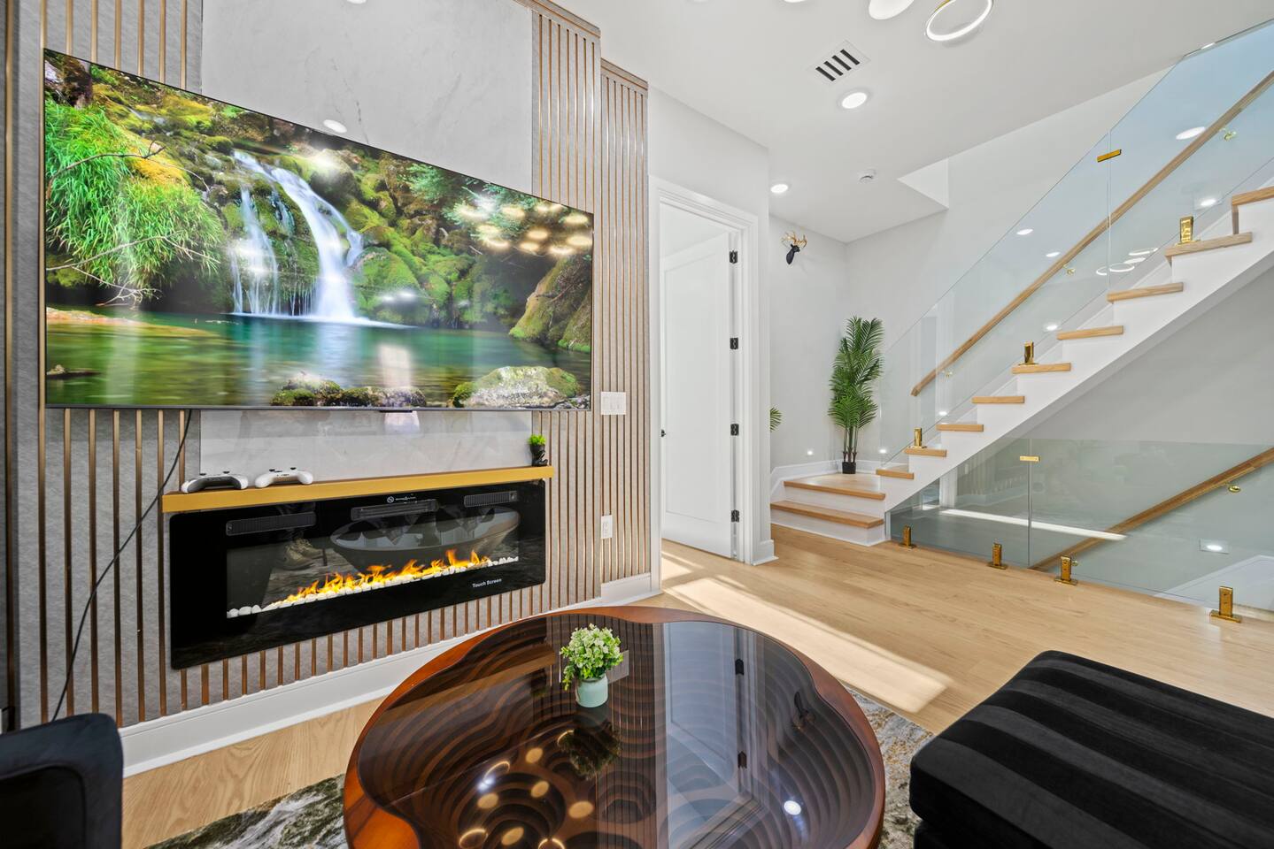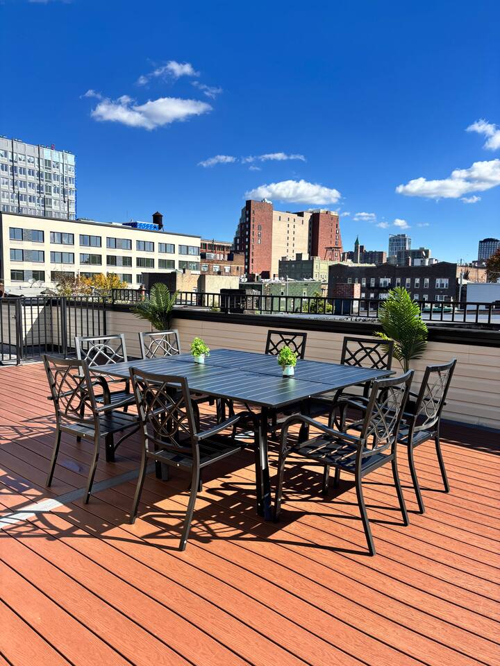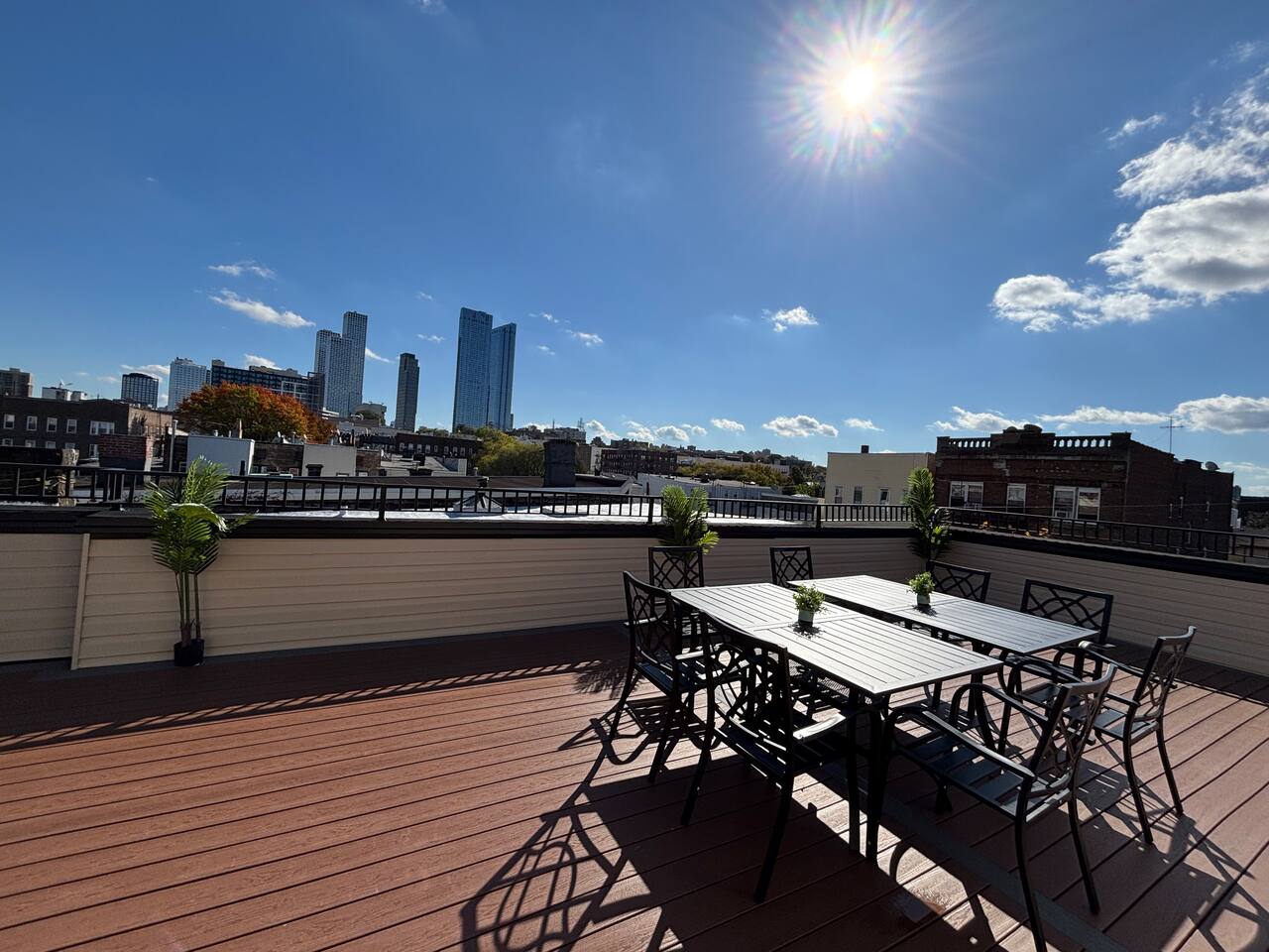 PLEASE NOTE THAT THIS PROPERTY NEEDS CLIMBING 1.5 FLIGHT OF STAIRS AS ITS LOCATED ON THE 2ND FLOOR OF THE BUILDING. FREE STREET PARKING ONLY Step into modern elegance and comfort in this 3-bedroom, 3-bath Jersey City residence. Bright and airy with high ceilings and large windows, the open living area features a Smart 4K TV, plush seating, and a fully equipped kitchen perfect for dining and entertaining. Each bedroom offers a king-size bed with luxury memory foam mattress, while three sleek bathrooms provide privacy and convenience. Head to your private rooftop to enjoy breathtaking downtown skyline views — ideal for morning coffee or evening drinks. Your perfect city getaway awaits — where style, comfort, and luxury meet. Kindly note: This elegant 3-bedroom, 3-bath apartment is accessible via stairs, adding to its charming and private layout. 🛡 Enhanced Security: Ring cameras at the front entrance provide peace of mind for a safe and secure stay. 💨 Ultra-Fast Wi-Fi: Enjoy blazing 500+ Mbps for seamless streaming, work, or video calls. 💻 Dedicated Workspace: Thoughtfully designed desk with convenient charging ports, ideal for productivity. 🛏 Opulent Bedrooms: Three king-size beds with 12-inch luxury memory foam mattresses, fine linens, and plush pillows for the ultimate restful sleep. 🛋 Elegant Living Area: Queen pull-out sofa for extra guests, complemented by a Smart 4K Fire TV and Xbox with Ultimate Game Pass (purchases billed to your account). 🎲 Entertainment Options: A curated selection of board games for cozy and fun-filled evenings. 🍽 Gourmet Kitchen: Fully equipped with stove, microwave, refrigerator, dishwasher, toaster, coffee maker, and all essentials for effortless cooking and dining. ❄️ Smart Refrigerator: Modern ThinQ fridge with filtered water, cubed or crushed ice, and Wi-Fi smart controls for ultimate convenience. 🧴 Premium Linens & Toiletries: Fresh, high-quality linens and towels, plus essential toiletries provided for a five-star experience. 🧺 In-Unit Laundry: Samsung Bespoke washer and dryer for your convenience. ✨ Impeccable Cleanliness: Professionally cleaned and sanitized before and after every stay to ensure a pristine environment.
