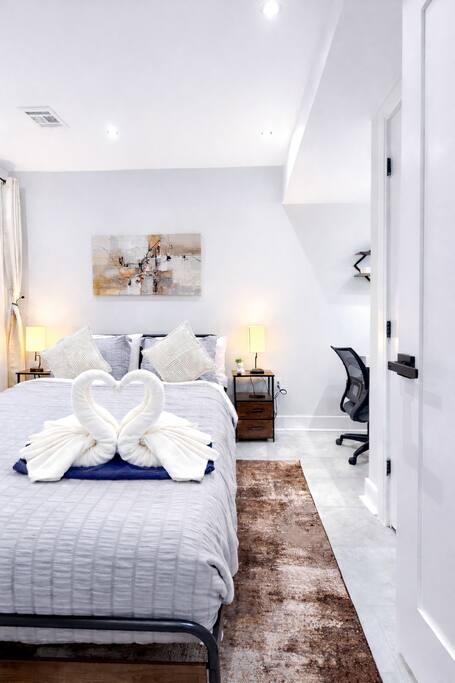 ✨ Amenities & Highlights 🚗 Parking: Kindly note that this property offers street parking only. 🛏 Comfortable Bedroom: Thoughtfully designed 1-bedroom layout featuring a modern-luxury master bedroom with a plush queen bed, dedicated workspace, and TV to ensure restful nights for every guest. 🛋 Inviting Living Room: A warm and welcoming gathering space with a queen sofa bed, TV, and a variety of board games, X-box—perfect for relaxing evenings after exploring the area. 🍳 Fully Equipped Kitchen: Complete with essential cookware and appliances like smart microwave, oven, dishwasher, making meal preparation and dining effortless and enjoyable. PARKING: Kindly be aware that there is no driveway or garage and only street parking is available . Nevertheless, due to the urban setting, securing a parking spot becomes increasingly challenging as the evening progresses. Additionally, it is essential to adhere to the designated street cleaning hours and relocate your vehicle accordingly. Street cleaning occurs between 10am to 12pm on Tuesdays and Fridays and on the opposite street on Mondays and Thursdays between 10:00 AM to 12:00 PM. ✨ Thoughtful Design & Comfort: Blending modern luxury, functionality, and carefully curated touches throughout, this home offers a memorable and comfortable stay for families, friends, and business travelers alike.
