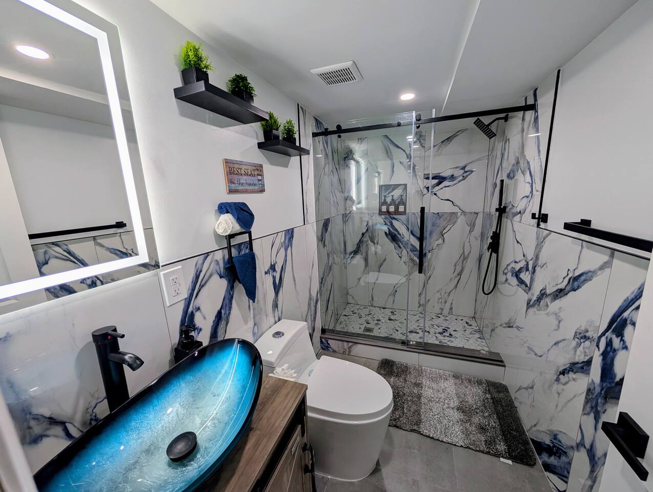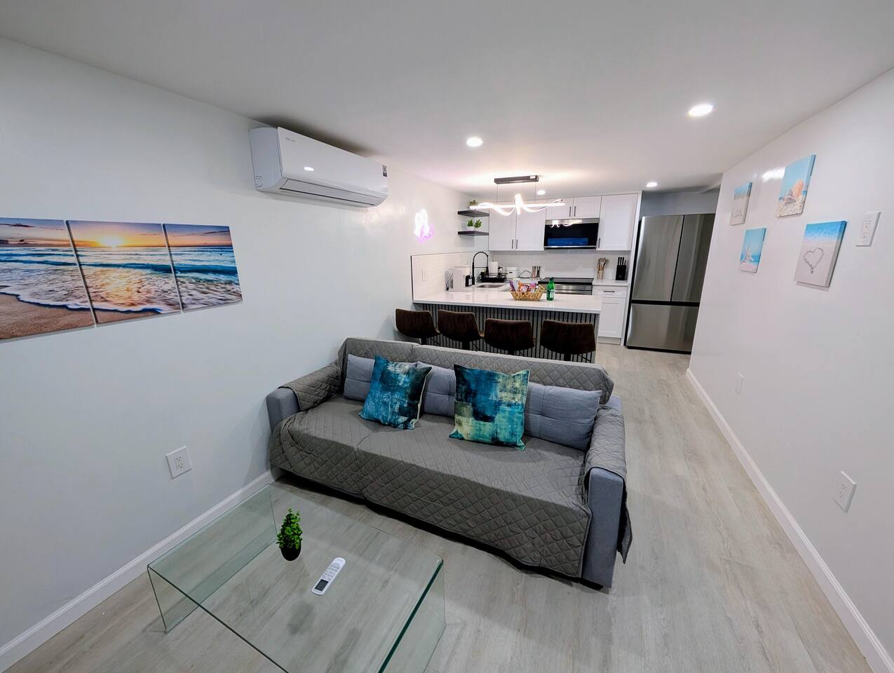 Newly renovated 1-bedroom brick basement apartment featuring modern luxury finishes and state-of-the-art appliances. This stylish space boasts a sleek, contemporary design with high-end materials throughout. Located just one block from the light rail station, offering a convenient commute to the World Trade Center in less than 35 minutes. Central to everything, this is city living at its finest!