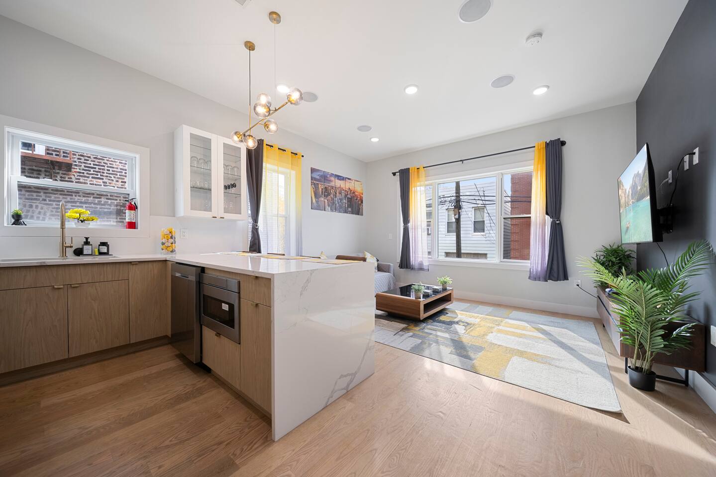 Your perfect getaway starts here. Whether it's a family vacation, a friends' reunion, or a couple's retreat, our home is your canvas for unforgettable memories. Step inside our elegant getaway where modern luxury meets comfort. The spacious, tastefully furnished interiors provide a cozy haven for your group, while the open floor plan of the living area is ideal for quality time with friends and family. When it's time to retire for the night, you'll find three cozy bedrooms, each designed for relaxation and restful sleep. The modern bathrooms provide all the conveniences you need. In the morning, savor a cup of coffee on the patio, taking in stunning views. It's a perfect spot to soak up the sun or enjoy a nightcap under the stars. Convenience is key here, as you're just a 10-minute walk from Journal Square PATH Station, which connects you to the Financial District in a mere 30 minutes. For a change of scenery, a 10-minute drive brings you to the charming streets of Hoboken, where you can explore quaint shops and delightful eateries. PARKING: Kindly be aware that there is no driveway or garage and only street parking is available . Nevertheless, due to the urban setting, securing a parking spot becomes increasingly challenging as the evening progresses. Additionally, it is essential to adhere to the designated street cleaning hours and relocate your vehicle accordingly. Street cleaning occurs between 8am and 10am on Tuesdays and Fridays for Dekalb Ave. Westside Avenue falls under a commercial zone designation. If you choose to park your car there, it must be relocated before 7am in the morning. Don't miss the chance to make this modern haven your home away from home during your Jersey City adventures. Book your stay now and embark on an exciting journey with all the comforts of home, and then some. We can't wait to host you!