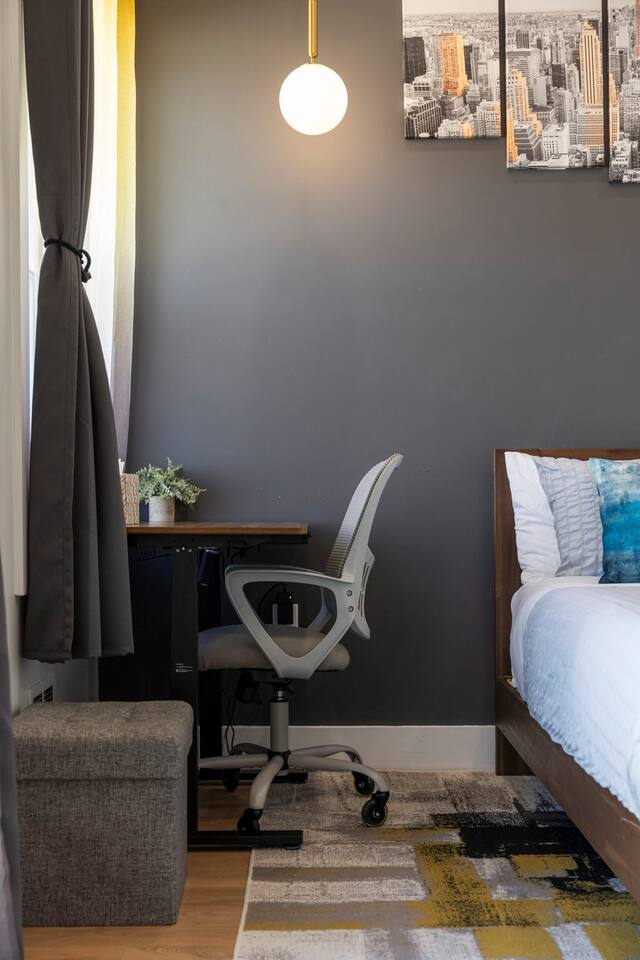 Internet Access & 2x Workstations: Enjoy high-speed Wi-Fi with blazing speeds exceeding 500Mbps. The network details can be found in the platform messaging and within the premises. The place is equipped with 2x Adjustable work desks and ergonomic office chairs for longer Workcations. Heating and Cooling: Experience a climate tailored to your liking with our intelligent and eco-friendly heating and cooling system. Adjust the thermostat for optimal comfort throughout your stay. Compact Culinary Haven: Get ready to explore your culinary skills in our well-appointed kitchenette and coffee station. Equipped with smart appliances and essentials, it offers convenience and efficiency for your cooking endeavors. Cookware, dishes, and utensils are provided for your use. We kindly ask that you tidy up after preparing your culinary delights Laundry Facilities: Take advantage of our accessible washer and dryer for your laundry needs. It's all part of ensuring your stay is as comfortable and convenient as possible. PARKING: Kindly be aware that there is no driveway or garage and only street parking is available . Nevertheless, due to the urban setting, securing a parking spot becomes increasingly challenging as the evening progresses. Additionally, it is essential to adhere to the designated street cleaning hours and relocate your vehicle accordingly. Street cleaning occurs between 8am and 10am on Tuesdays and Fridays for Dekalb Ave. Entertainment Haven with Xbox and Board Games: Transform your stay with our entertainment haven featuring an Xbox and a variety of family board games. Enjoy endless fun and quality time, whether you're competing in video games or bonding over classic board games. Create unforgettable memories in this cozy and entertaining setting. House Rules: No Smoking: We kindly remind you that smoking is strictly prohibited. Your cooperation ensures a pleasant environment for all guests. Pets: Unless our property is explicitly designated as pet-friendly, we regret to inform you that pets are not allowed inside the house. If you plan to bring a pet, please contact us in advance to discuss available options. Quiet Hours: In consideration of our neighbors, we ask that you observe quiet hours from 10:00 PM to 8:00 AM. Your cooperation helps maintain a peaceful and respectful atmosphere for everyone in the vicinity. Parties and Events: To maintain the tranquility of our property and out of respect for our neighbors, we kindly request that no parties, events, or large gatherings take place without prior approval. We appreciate your understanding in this matter. Guest Count: The maximum number of guests is as specified in your reservation. Additional guests beyond this limit may incur extra charges. Please ensure adherence to the stated guest count to uphold a comfortable and enjoyable experience for all occupants. Thank you for your cooperation.