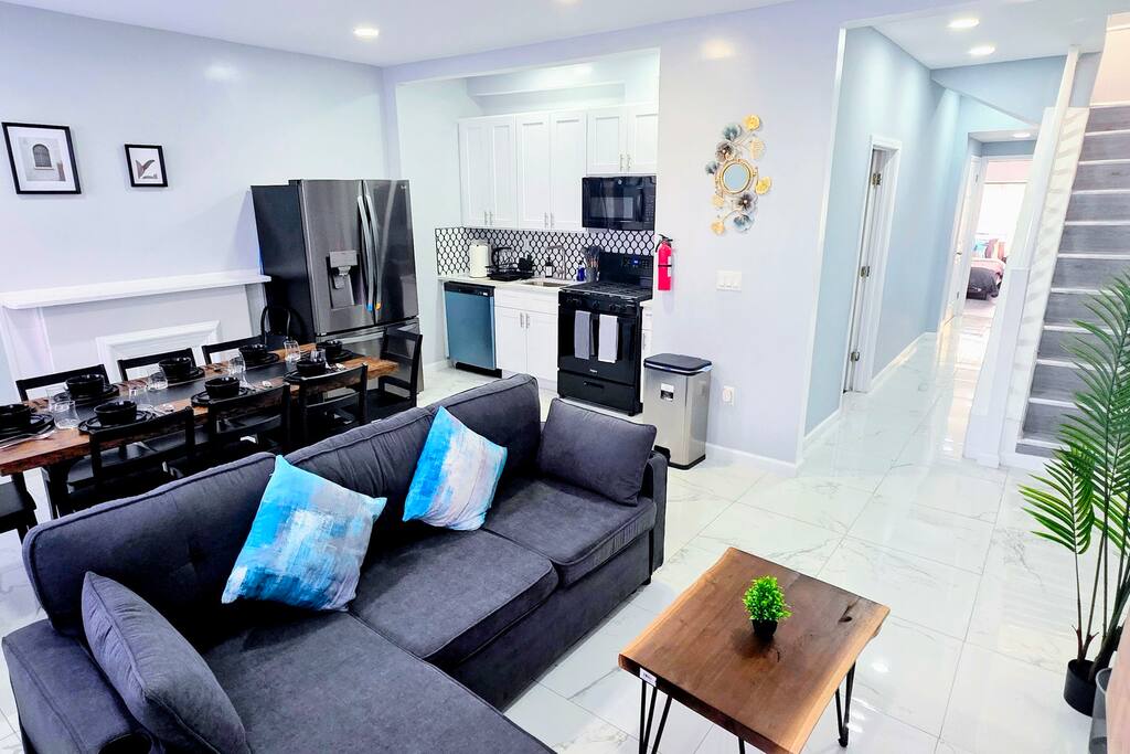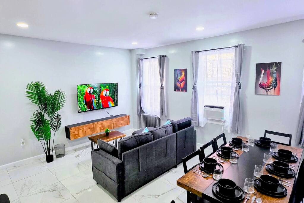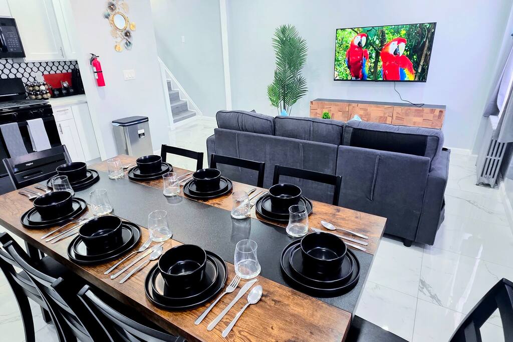 β οΈ Important: π Parking: Driveway spot included. π Quiet Hours: 10 PM β 8 AM to ensure a peaceful stay for everyone. π No Smoking: Strictly prohibited inside the property. πΆThis is a lovely duplex on 2nd floor, guests will need to climb the stairs π€We kindly ask all guests to please respect the space to ensure a comfortable stay and a peaceful environment for neighbors. Our 3-bedroom, 2-bath condo promises a seamless blend of urban excitement and homey relaxation, making it a perfect stay for all kinds of travelers. Whether you're here for business or leisure, this urban oasis allows you to experience the city at its finest, with every convenience at your fingertips just a short 15-minute trip to NYC & 15- mins drive from Newark Liberty International Airport. Condo Highlights & Amenities: β Security: Ring cameras at front entrance and backyard for safety. β High-Speed Wi-Fi: 500+ Mbps for work or streaming. β Workspace: Dedicated desk with charging ports. β Bedrooms: Three queen beds with 12-inch luxury memory foam mattresses. β Living Room: Queen pull-out sofa bed . β Dining Area : Eight seater dining table for breakfast & dinner. β Game Room : Smart 4K Fire TV with Sofa bed and Xbox with Ultimate Game Pass (any purchases during your stay charged to your account) . β Board Games : Enjoy a variety of board games for fun-filled evenings . β Fully Equipped Kitchen: Stove, microwave, refrigerator, dishwasher, toaster, coffee maker, and all cooking & dining essentials. β Refrigerator : Modern ThinQ fridge with filtered water, cubed or crushed ice, and smart Wi-Fi controls. β Linens & Toiletries: Fresh linens, towels, and basic toiletries provided. β Laundry: In-unit Samsung Bespoke washer and dryer. β Family-Friendly: Located next to a childrenβs park. β Cleanliness: Professionally cleaned and sanitized after each stay. This property is less than a min away by walk to the Summit market ( a convenience store ) & Mexican Food, 4 mins away from Church , 4 mins away from Gym ,7 mins away from Dry Cleaner & Tailor , 8 mins away from a Salon. All of the above facilities will be just few steps away from you.