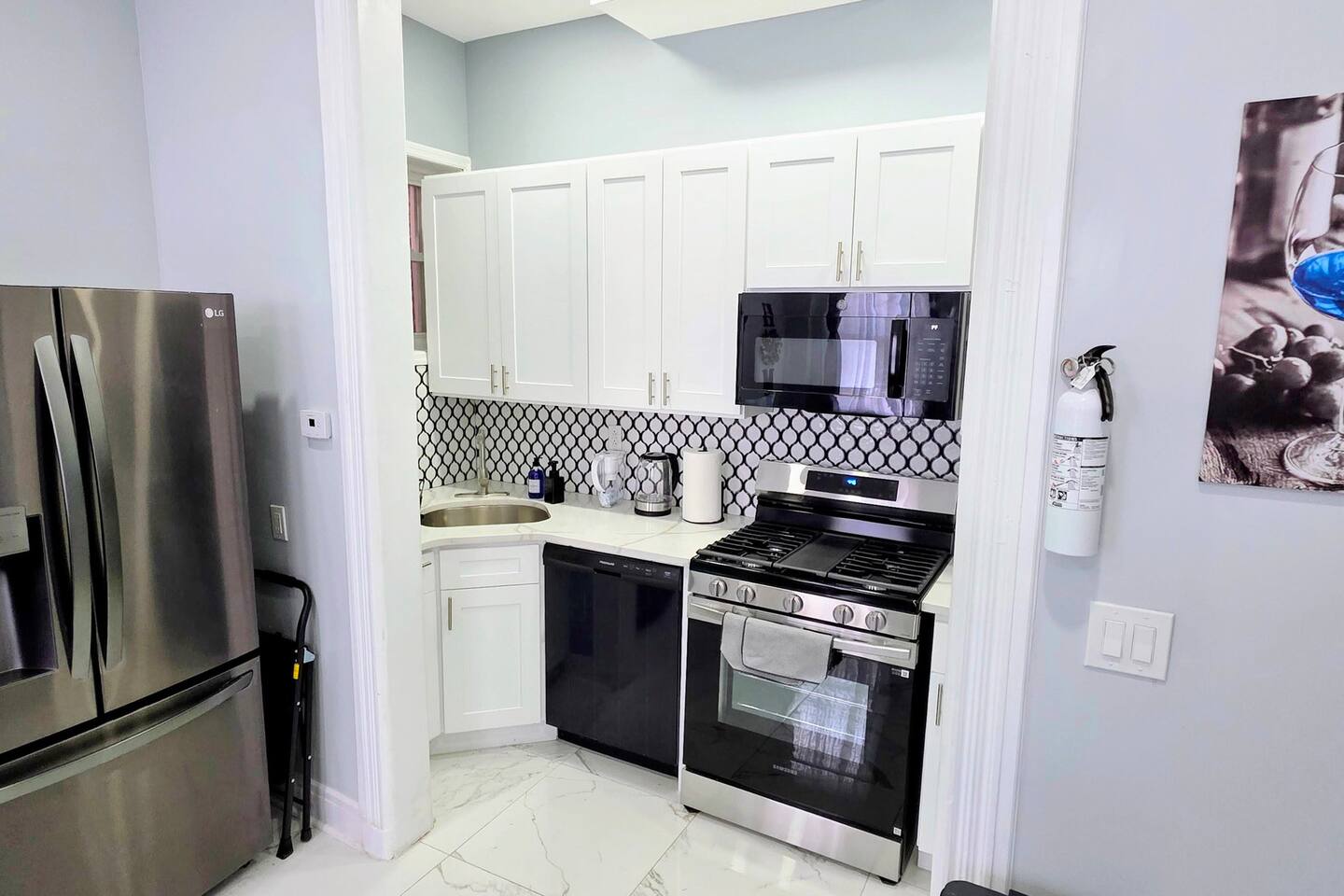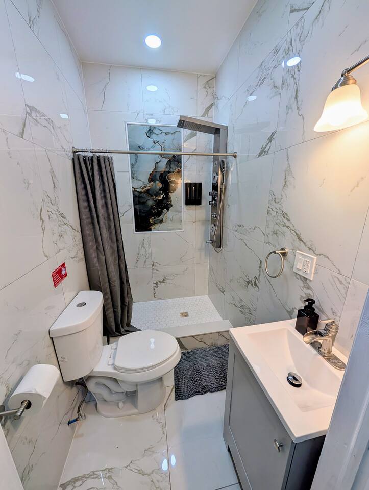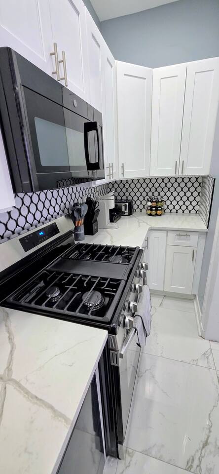 Welcome to your perfect getaway in Jersey City! This newly renovated, modern 2-bedroom, 2-bath condo offers the ultimate blend of comfort, convenience, and luxury. Located just 15 minutes from New York City and Newark Airport, this stylish first-floor apartment is situated in a quiet, safe neighborhood. It's ideal for families, business travelers, or groups looking to explore the area while enjoying top-notch amenities. ✅ High-speed 500 Mbps+ Wi-Fi. ✅ Modern and comfortable design throughout the condo. ✅ Two bedrooms, each with luxury 12-inch memory foam mattresses: Two queen beds. ✅ Living room with a queen pull-out sofa bed. ✅ Fully equipped kitchen with premium appliances: - Includes a stove, microwave, refrigerator, dishwasher, toaster, and a coffee maker. - All cooking and dining essentials provided. ✅ Entertainment options include: - Smart 4K Fire TV - Xbox with access to Ultimate Game Pass(any purchases during your stay will be charged to your account). ✅ Dedicated workspace with a desk and charging ports . ✅Linens, Towels, and toiletries provided. ✅ In-unit Samsung Bespoke laundry center. ✅ Located next to a children's park, creating a family-friendly environment. ✅Professionally cleaned and sanitized after each stay ✅ Security features include Ring cameras: - One at the front entrance and one at backyard