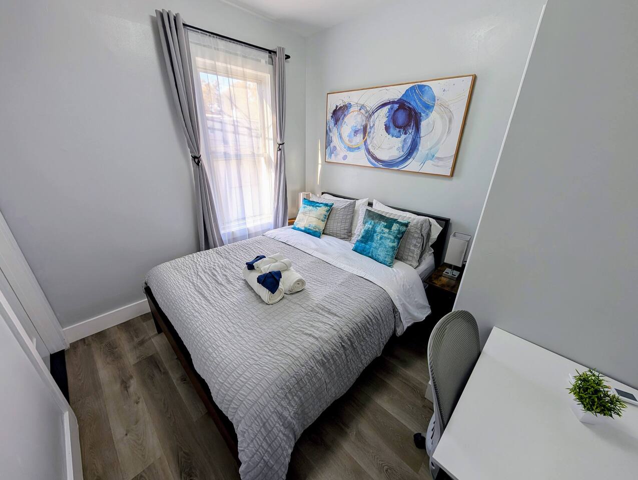 Experience urban comfort in our serene 3BR, 2BA apartment—perfect for business or leisure. Enjoy three workstations, high-speed internet, and an in-unit washer and dryer. Just a short walk to Journal Square PATH Station, with a 20-30 minute ride to NYC. Ideal for short or long stays! Street parking only, no dedicated parking available. Please review the full listing for amenities and house rules before booking. Feel free to reach out with any questions!