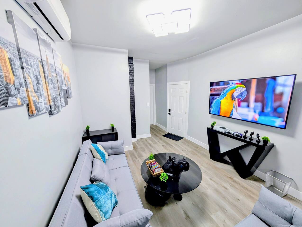 Please read entire description and house rules before booking. Welcome to your perfect getaway in Jersey City! This newly renovated, modern 3-bedroom, 1.5-bath condo offers the ultimate blend of comfort, convenience, and luxury. Located just 15 minutes from New York City and Newark Airport, this stylish first-floor apartment is situated in a quiet, safe neighborhood. It's ideal for families, business travelers, or groups looking to explore the area while enjoying top-notch amenities.