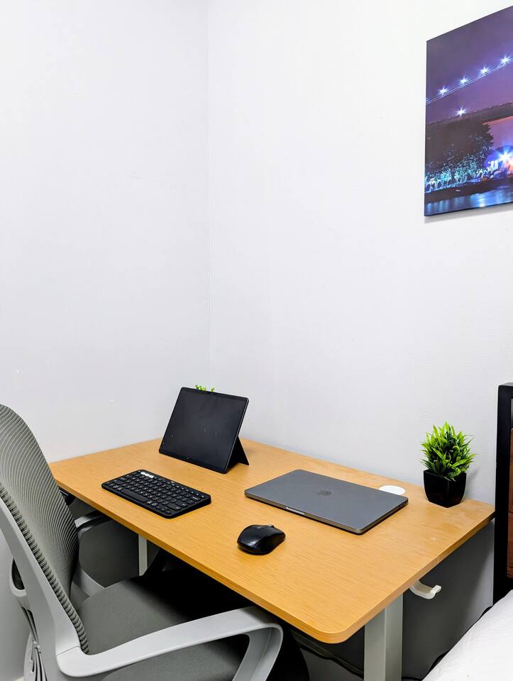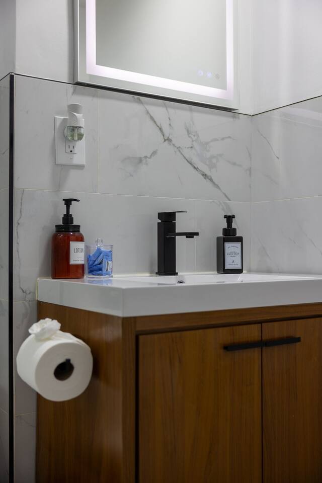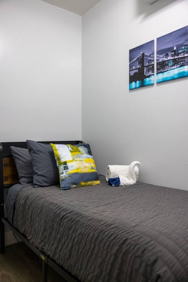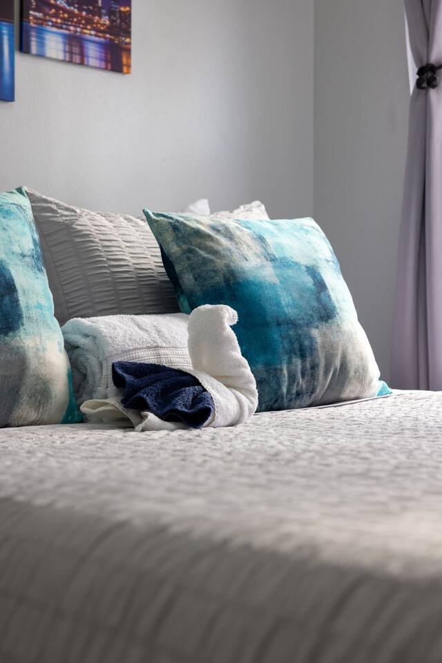 ✅ High-speed 500 Mbps+ Wi-Fi. ✅ Wireless smartphone charging ✅ Modern and comfortable design throughout the condo. ✅ Three bedrooms, each with luxury 12-inch memory foam mattresses: Two queen beds and one twin bed. ✅ Living room with a queen pull-out sofa bed. ✅ Fully equipped kitchen with premium Samsung Bespoke appliances: - Includes a stove, microwave, refrigerator, dishwasher, toaster, and a coffee maker. - All cooking and dining essentials provided. ✅ Entertainment options include: - Smart 4K Fire TVs in two bedrooms and the living room. - Xbox with access to Ultimate Game Pass(any purchases during your stay will be charged to your account). ✅ Dedicated workspace with a desk and charging ports . ✅Linens, Towels, and toiletries provided. ✅ In-unit Samsung Bespoke laundry center. ✅ Located next to a children's park, creating a family-friendly environment. ✅Professionally cleaned and sanitized after each stay ✅ Security features include three Ring cameras: - One at the front entrance, one at the backyard, and one on the sidewalk.